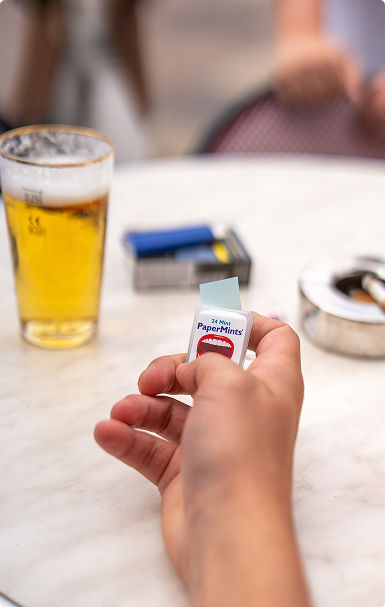 The perfect solution after a drink, after a meal, and for smokers.